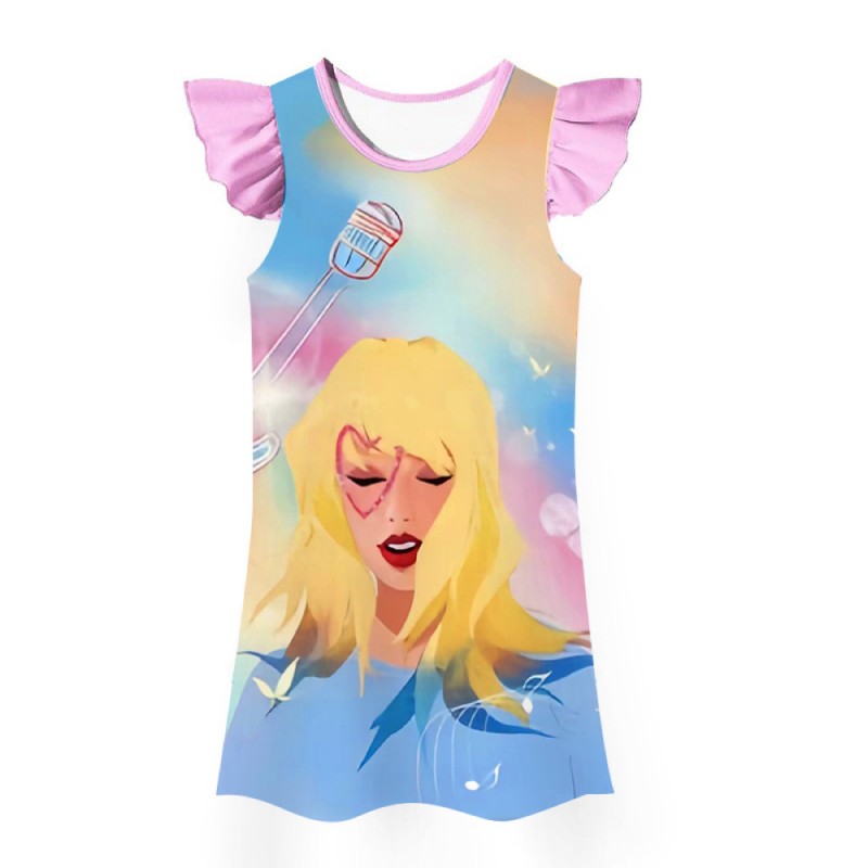 ¿Buscas el regalo perfecto para la pequeña fan de Taylor Swift? ¿O un pijama cómodo y fresco para las cálidas noches de verano? Este vestido de dormir Taylor Swift es la elección ideal. Diseñado para que las niñas se sientan cómodas, frescas y llenas de estilo, tanto para dormir como para jugar en casa. Es más que un pijama, es una experiencia de confort inspirada en su artista favorita.