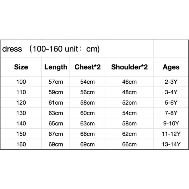 • Tallas precisas para cada edad: Disponible en tallas desde 100cm a 160cm, adecuado para niñas de aproximadamente 3 a 8 años.
