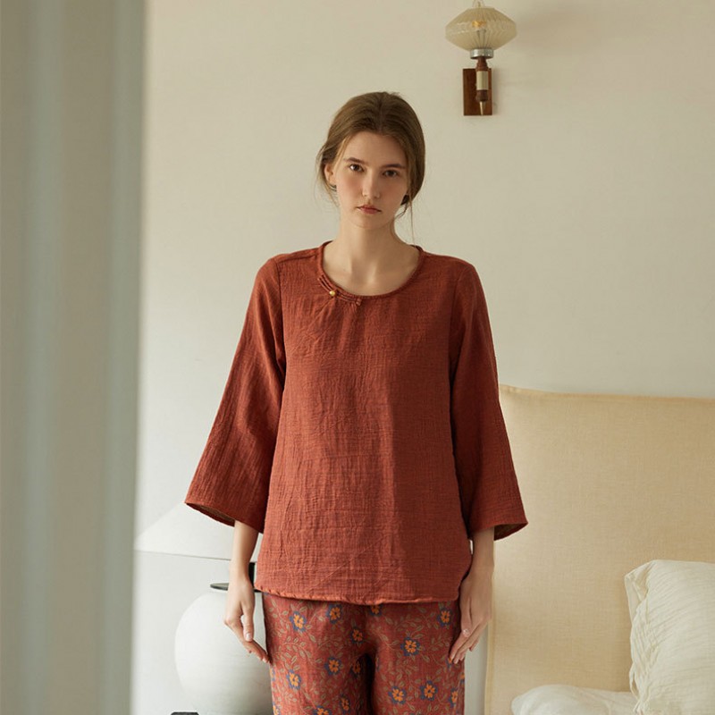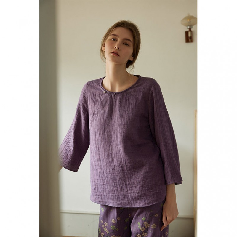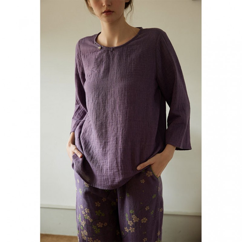 Etiquetas: Chinese style blouse, women's top, cotton linen blouse, retro blouse, ethnic top, 3/4 sleeve top, tea clothing, Zen clothing, Hanfu top, comfortable blouse