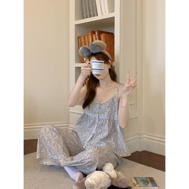 Etiquetas: cottagecore sleepwear, blue floral loungewear set, summer conjuntos de pijama for girls