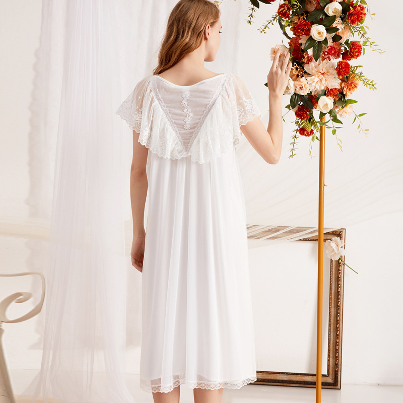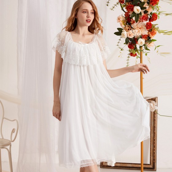 Etiquetas: women's nightgown, plus size, summer, lace, round neck, short sheer sleeves