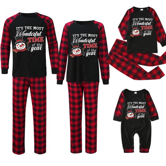 Etiquetas: Christmas family pijama, matching family pijama, plaid Christmas pijama, holiday parent-child set, festive family Ropa de hogar, "Wonderful Time" pijama, holiday print family sleepwear