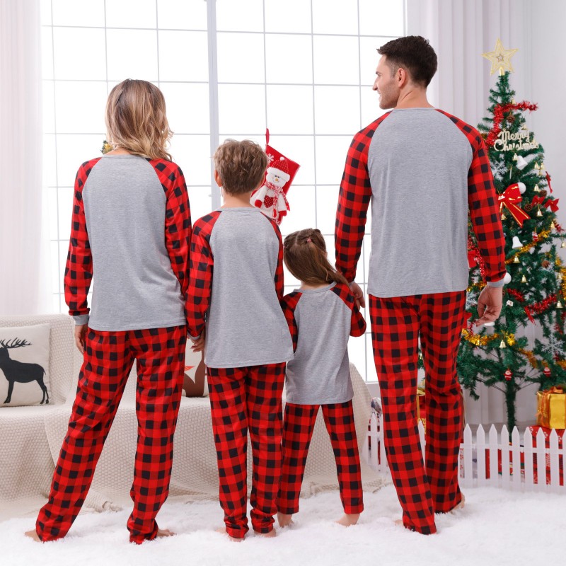 Christmas family pajamas, matching family pajamas, plaid Christmas pajamas, holiday parent-child set, festive family homewear,