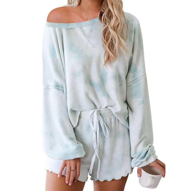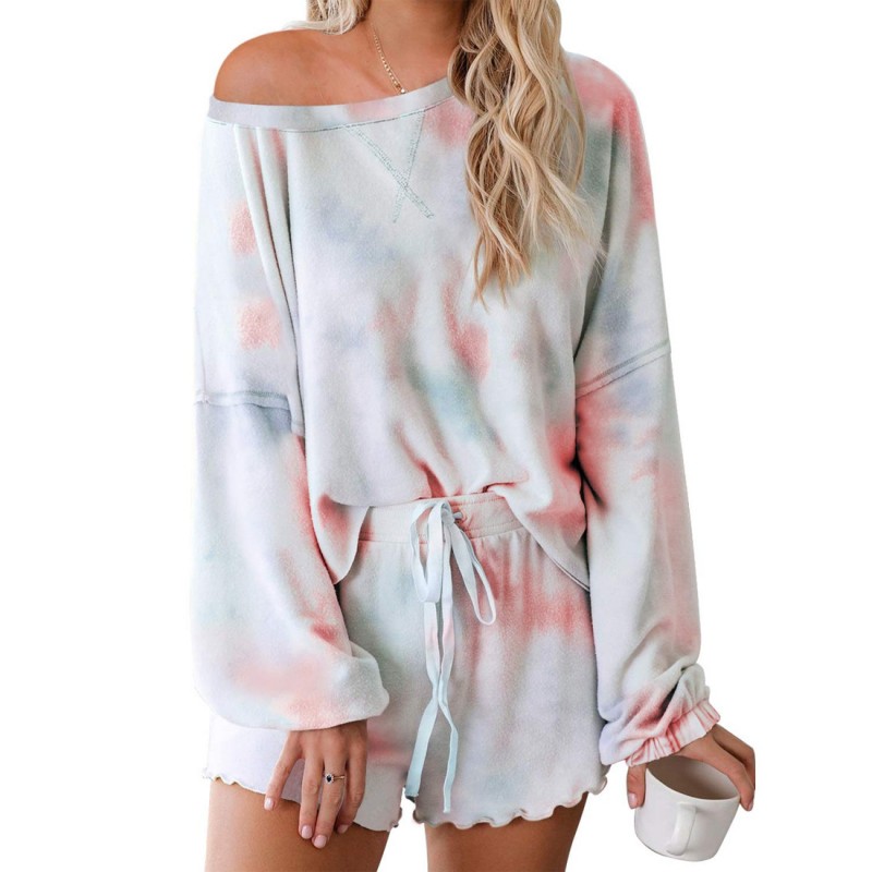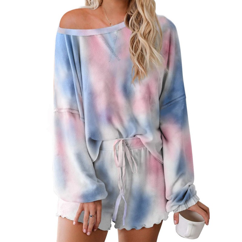 Etiquetas: Tie-dye Ropa de hogar, Women's Long-sleeved Shorts Tie-dye Brushed Summer Ropa de hogar, Two-piece Set Can Be Worn Outside Wedding Party