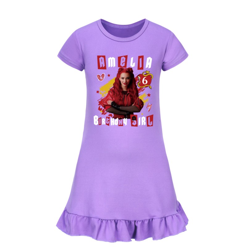 Etiquetas: Descendants 4 girls sleepwear, short sleeve nightgown, kids pijama, 100-160 sizes