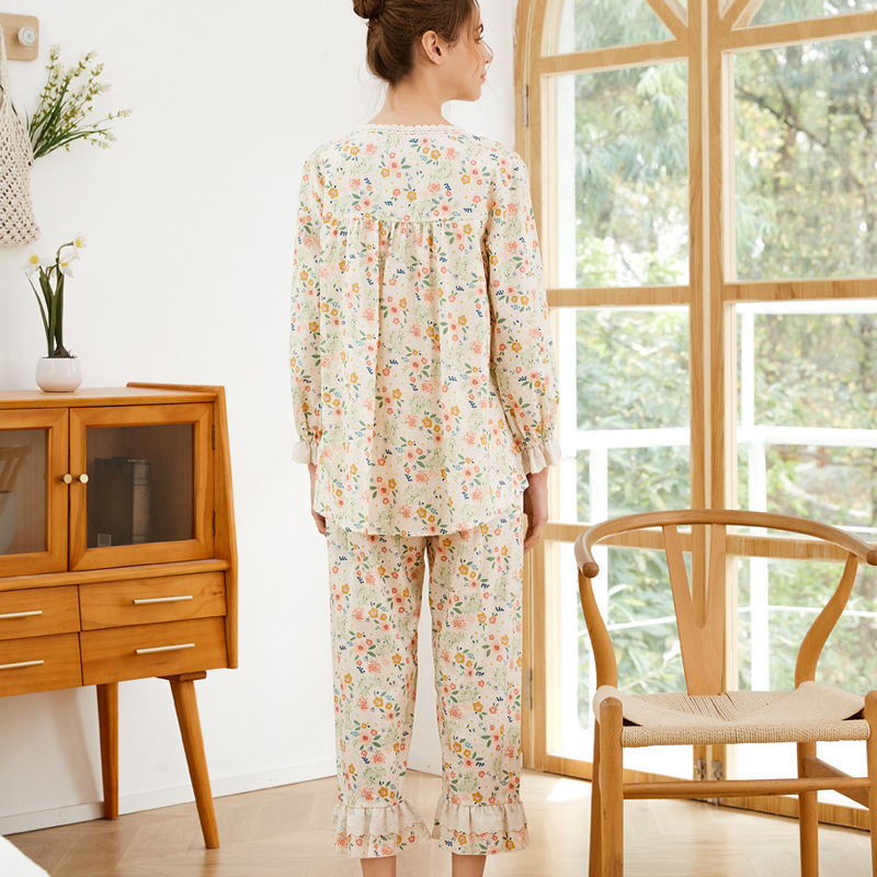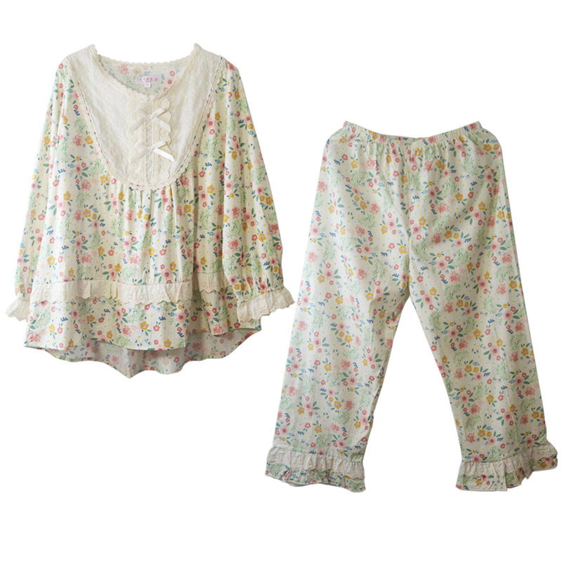 Etiquetas: european - american pijama set, young women, cotton, princess lace, countryside flowers, wearable outdoors, spring autumn