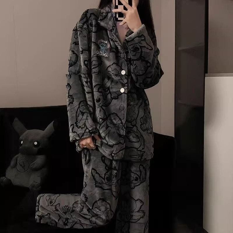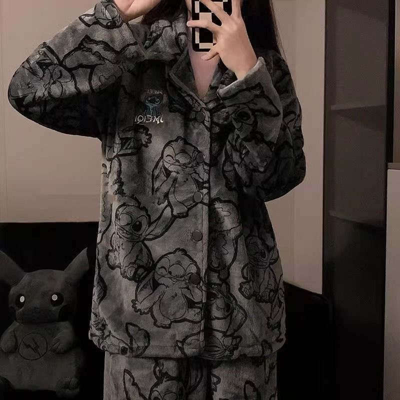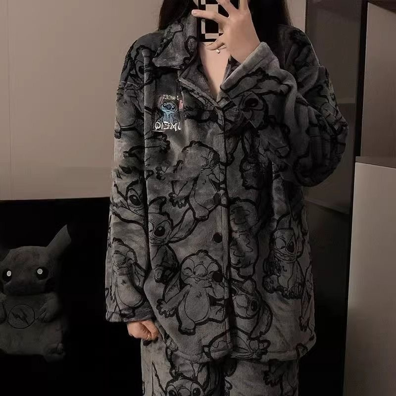 Etiquetas: Stitch pijama, coral fleece pijama, gray pijama, women's sleepwear, cute pijama