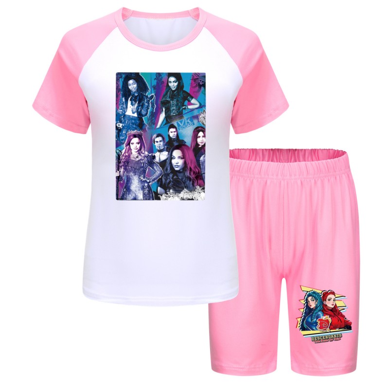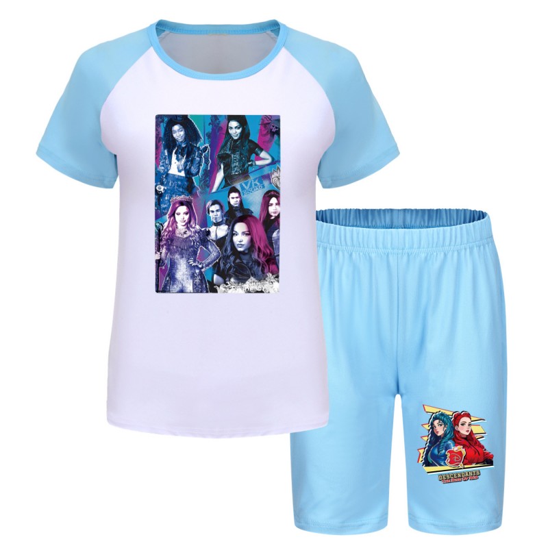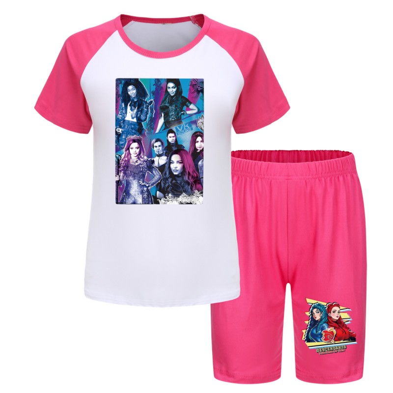 Etiquetas: Descendants 4, niñas sports set, summer T-shirt and shorts, children's activewear, Descendants clothing, boys and girls summer outfit