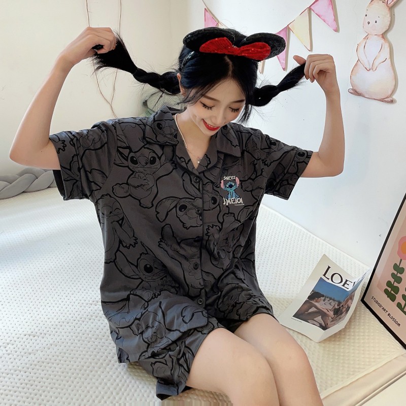 Pijama de Algodón Stitch - Cómoda Ropa de Casa para Parejas | Manga Corta