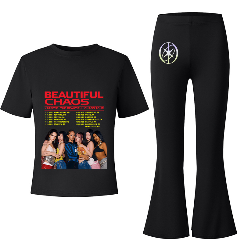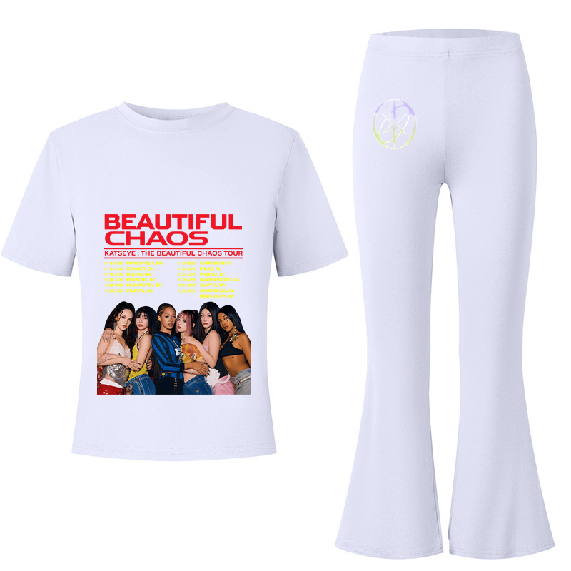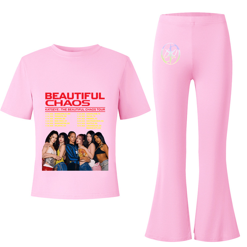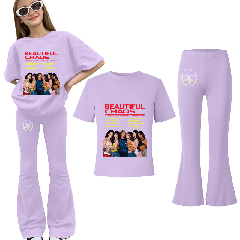 Etiquetas: KATSEYE kids outfit, kids summer clothing set, kids T-shirt and pants set, flared pants kids outfit, cartoon kids clothes, unisex kids casual set, European style kids wear