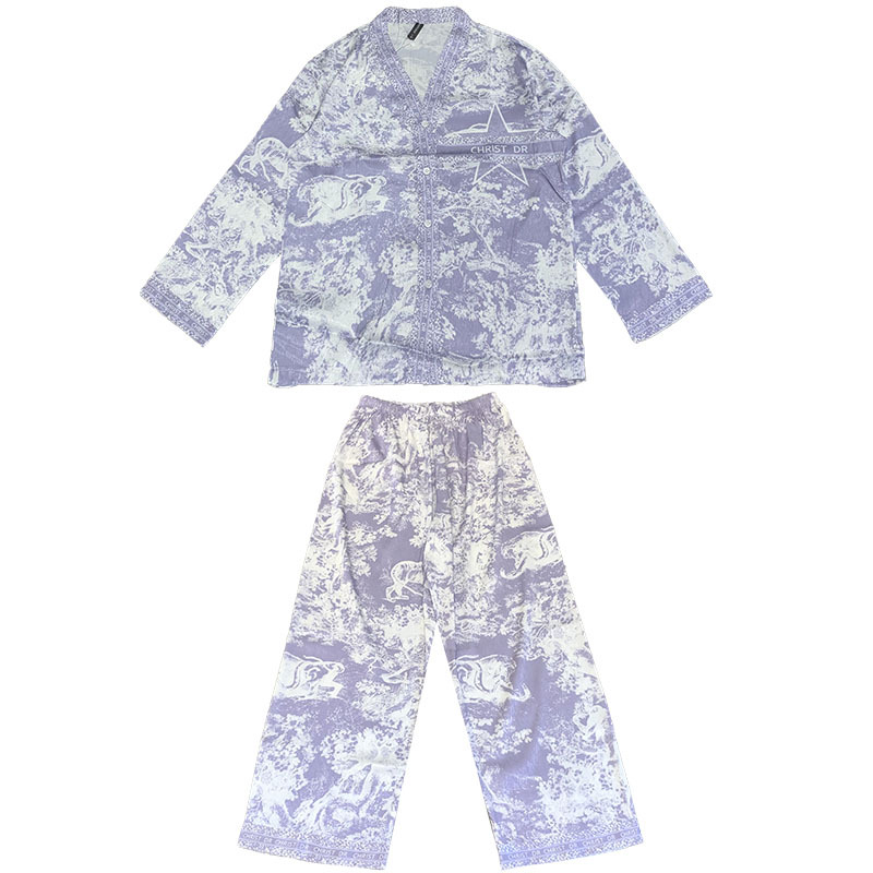 Etiquetas: ice silk pijama, women's pijama, ink painting, tie-dye, imitation silk, purple pijama, moisture-wicking, breathable