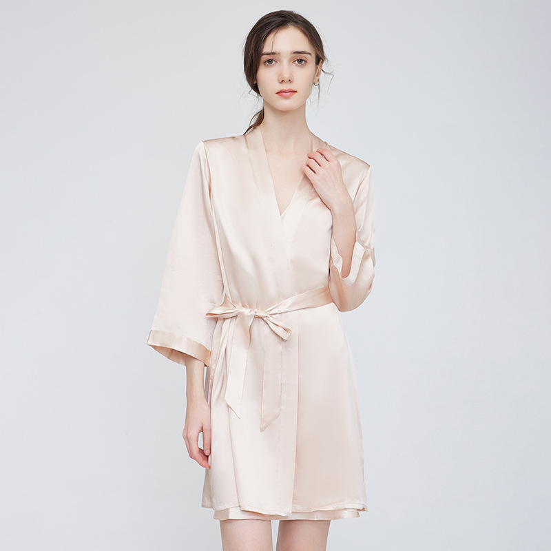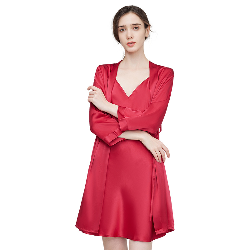 Etiquetas: Red 19 Momme Silk Bridal Robe - Luxurious Mulberry Silk Morning Gown