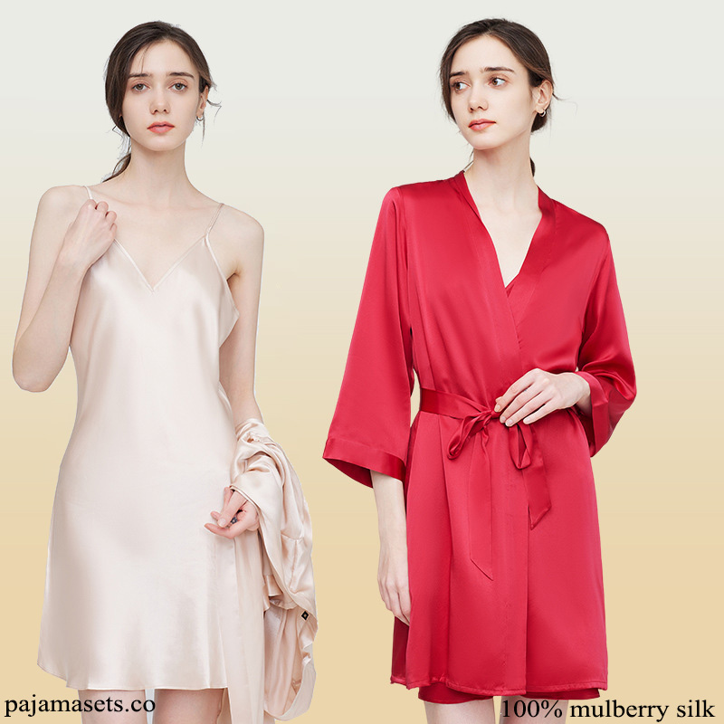 Conjunto Pijama de Seda Premium | Bata y Camisón Lujoso | Tallas M-XL