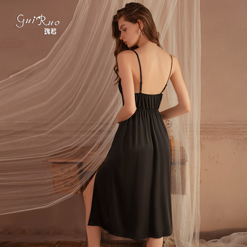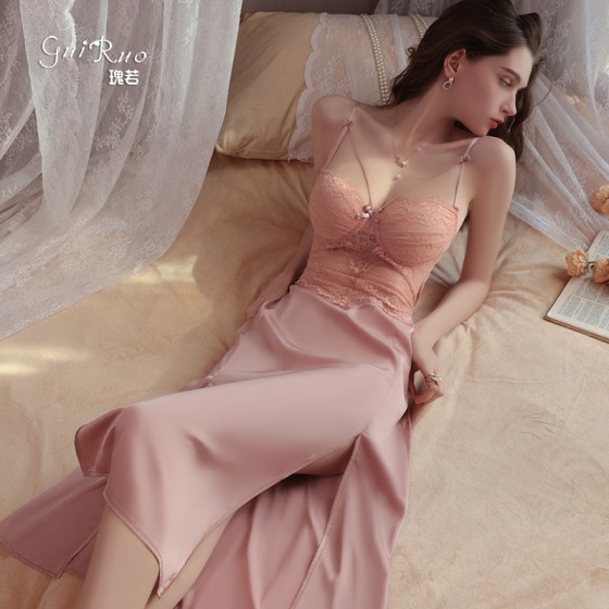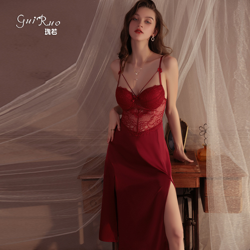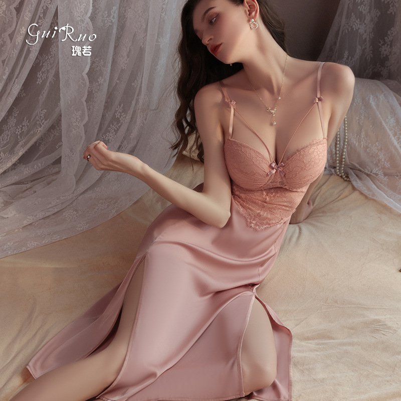 Etiquetas: lounge sets, chest pad nightdress, satin open split sleepwear, lace strap nightwear, sexy Ropa de hogar
