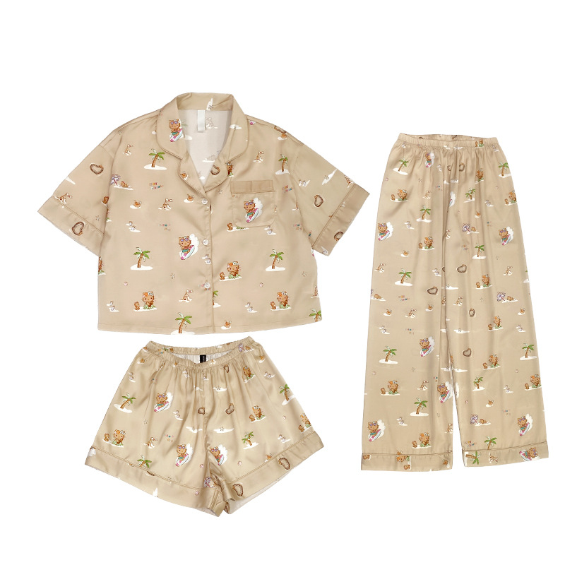 ice silk pajamas, women's pajamas, light coffee, three-piece set, imitation silk, summer pajamas, moisture-wicking, breathableEtiquetas: ice silk pijama, women's pijama, light coffee, three-piece set, imitation silk, summer pijama, moisture-wicking, breathable