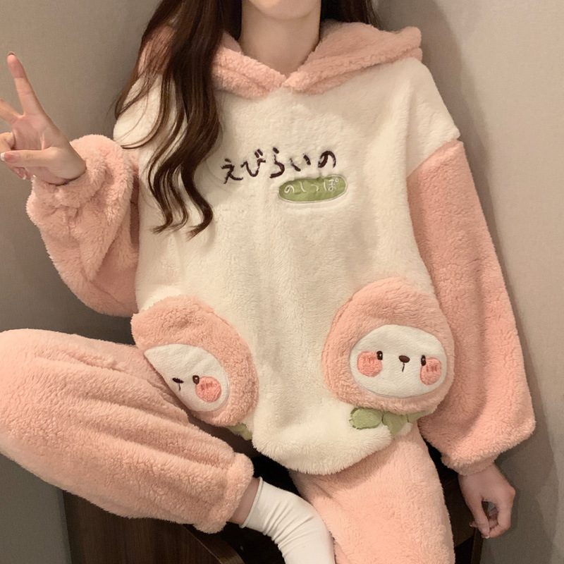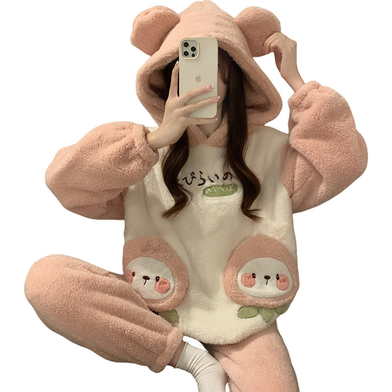 Pijama de Felpa Coral para Mujer - Conjunto Cómodo con Capucha | Ropa de Dormir
